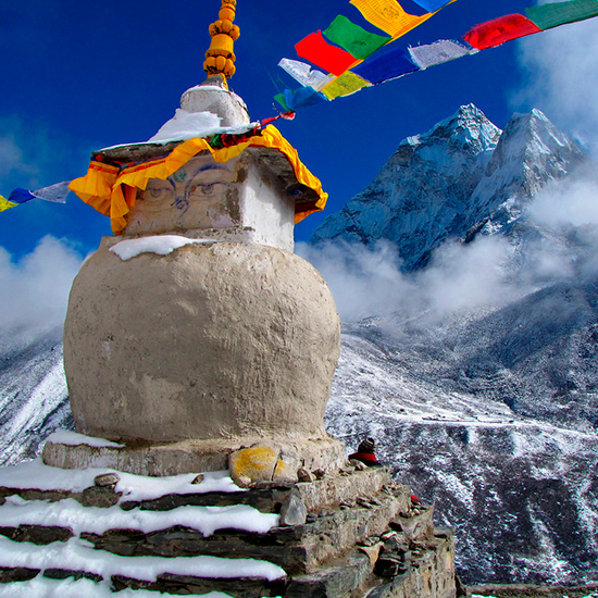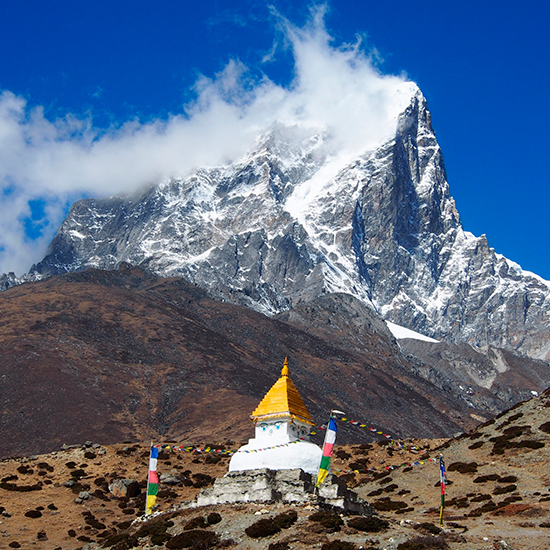 In fact, we cannot see Mt. Everest clearly and precisely from EBC. So, we arrange a side trip to the Kala Pattharpeak (5,550m/18,208ft). You enjoy a spectacular sunrise view touching the Mt. Everest summit and a 360° view of snow-capped mountains.